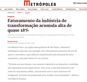 No portal Metrópoles, Maximu’s é destaque em reportagem sobre avanço do setor industrial (+) Leia mais