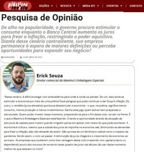 Diretor comercial da Maximu’s Embalagens Especiais participa de pesquisa de opinião do portal Plásticos em Revista (+) Leia mais